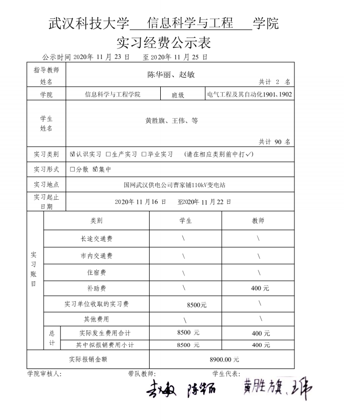 電氣工程2019級認(rèn)識實(shí)習(xí)公示表