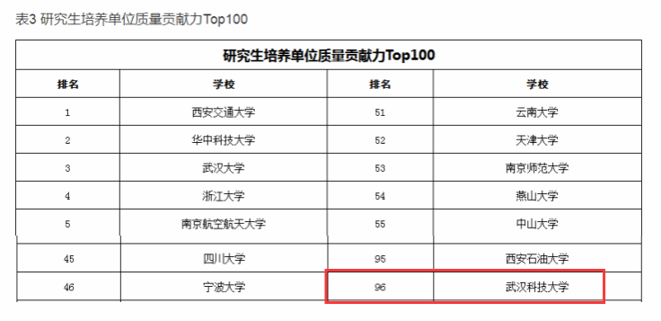 我校從650余家高校和科研院所中脫穎而出,分別在研究生培養(yǎng)單位貢獻力TOP100中名列90,在研究生培養(yǎng)單位規(guī)模貢獻力TOP100中名列70,在研究生培養(yǎng)質量貢獻力TOP100中名列96。