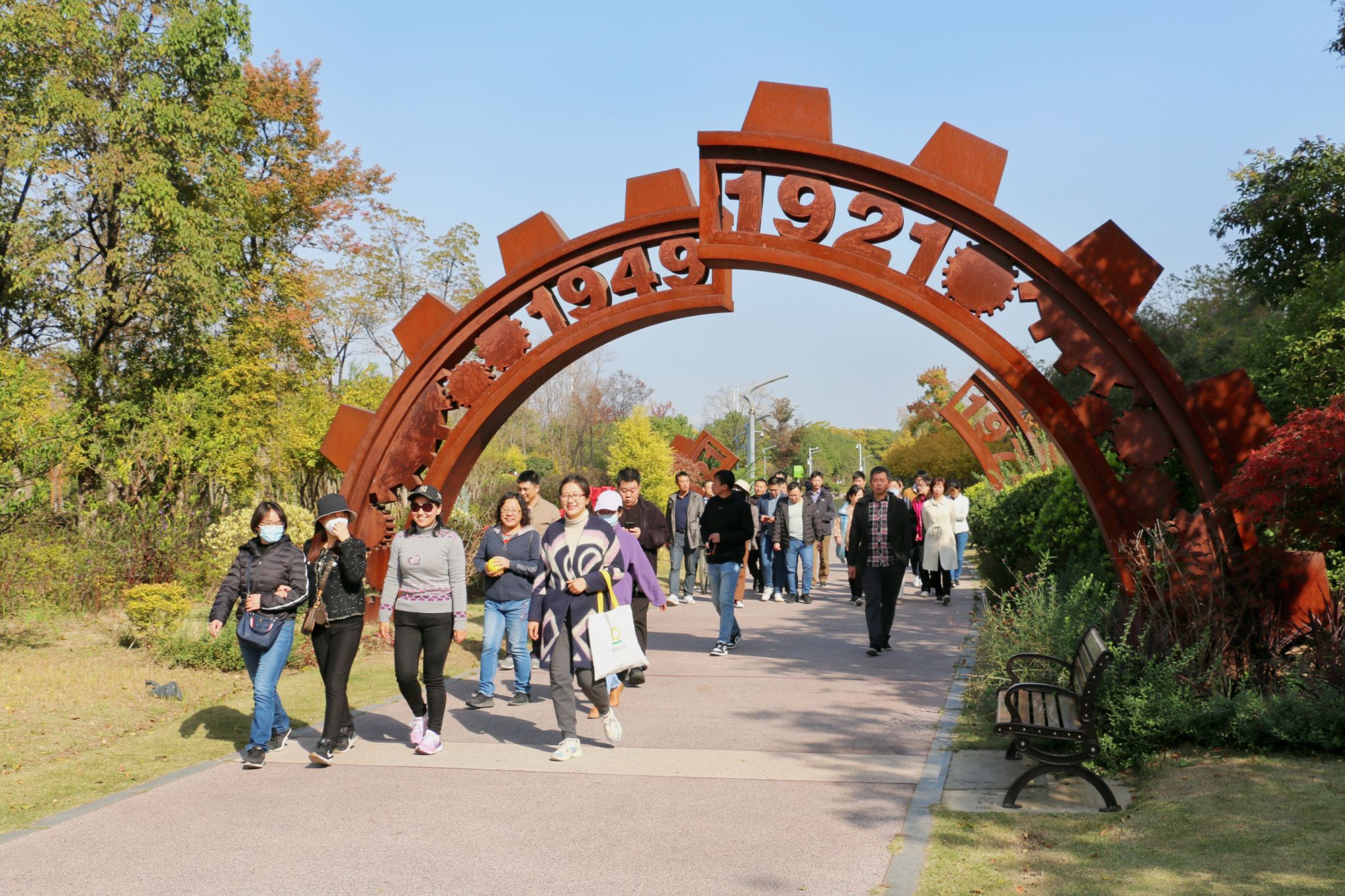 在初冬溫暖的陽(yáng)光下,老師們漫步在萬(wàn)里無(wú)云的藍(lán)天下、欣賞多彩的江灘風(fēng)景,感受了溫暖的冬日陽(yáng)光。 在江灘紅色教育基地,老師們學(xué)習(xí)回顧黨的發(fā)展壯大歷史,感受建黨建國(guó)以來(lái)的巨大變化。
