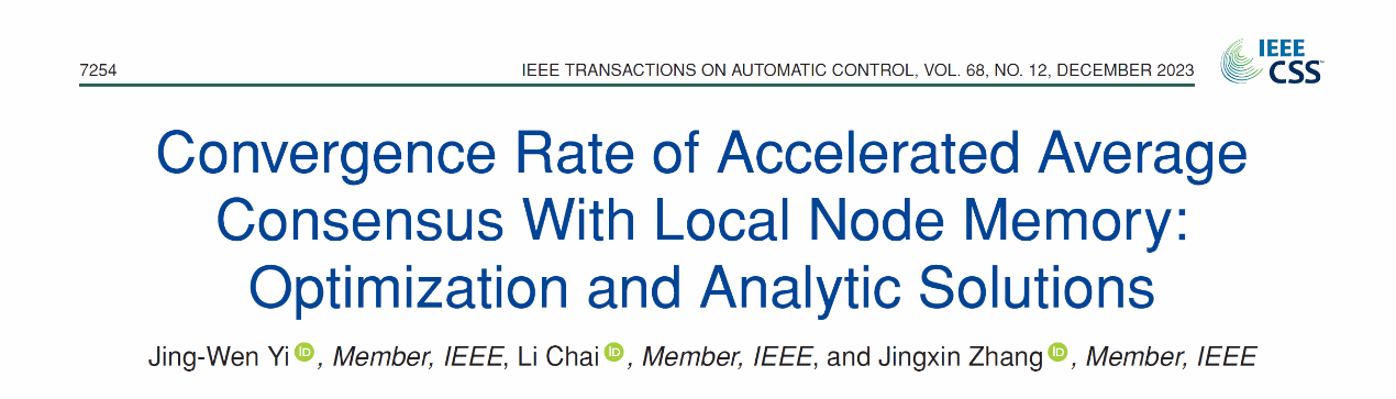 近日,人工智能與信息融合研究院在多智能體平均一致性研究中取得重要進展,解決了記憶加速算法研究中的幾個公開難題。研究結果以長文(full paper)發(fā)表在控制學科兩大頂級期刊之一的IEEE Transactions on Automatic Control (TAC),雙欄16頁。