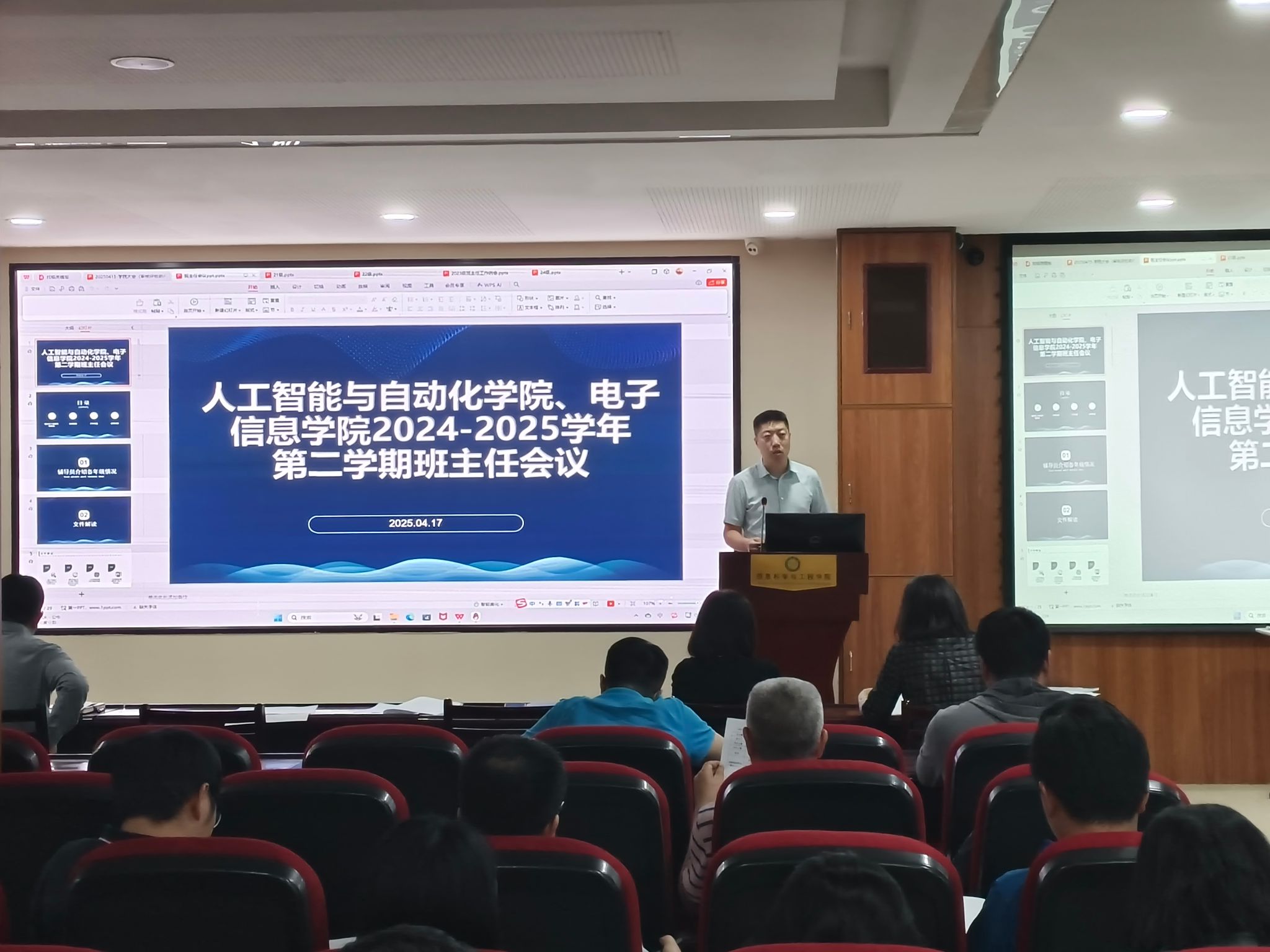本網(wǎng)訊(通訊員潘鑫)為貫徹落實(shí)學(xué)校有關(guān)會(huì)議精神,加強(qiáng)學(xué)風(fēng)建設(shè),筑牢安全防線,人工智能學(xué)院、電子信息學(xué)院于4月17日召開(kāi)2024-2025學(xué)年第二學(xué)期班主任工作會(huì)議。人工智能學(xué)院黨委書(shū)記冒穎,院長(zhǎng)劉斌,黨委副書(shū)記何明,副院長(zhǎng)程磊、朱斌,電子信息學(xué)院黨委書(shū)記王婧出席會(huì)議,系部主任書(shū)記、全體班主任及輔導(dǎo)員參會(huì)。會(huì)議由電子信息學(xué)院黨委副書(shū)記張彥良主持。