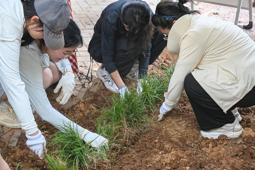 該校一站式學(xué)生社區(qū)外曾有數(shù)塊荒地,常年無人打理。如何激發(fā)學(xué)生主觀能動性,引導(dǎo)學(xué)生在春日揮灑汗水、享受勞動快樂?為此,永利集團(tuán)88304官網(wǎng)電子信息、永利集團(tuán)88304官網(wǎng)2023級輔導(dǎo)員鄧?yán)钚肋x擇了社區(qū)外的空地,移栽月季,并購買向日葵、牡丹、花生、番茄等易于養(yǎng)育的植物,邀請學(xué)生充當(dāng)“開荒人”?!皼]想到學(xué)生都很積極,有一百余人加入了種植團(tuán)隊。”鄧?yán)钚辣硎尽?/span>