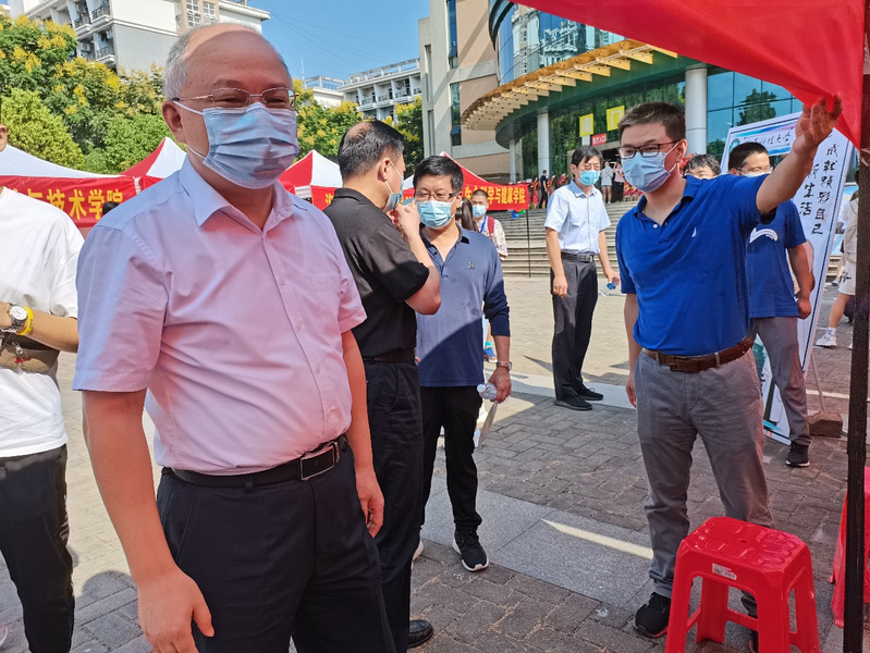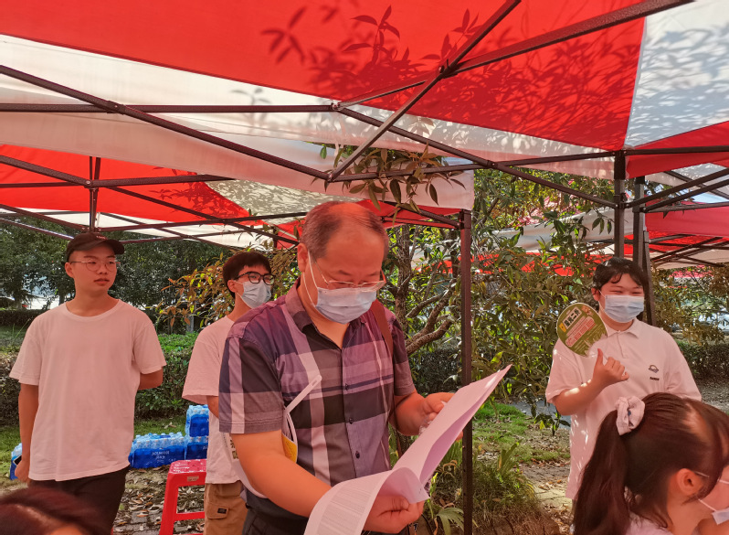 院黨委書記劉運(yùn)顯查看簽到情況 程嘉欣攝
