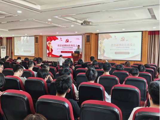 黨委副書(shū)記張彥良講述黨課《把忠誠(chéng)鐫刻在崗位上》。張彥良深入闡述了忠誠(chéng)于黨的事業(yè)的重要性,結(jié)合實(shí)際案例,教導(dǎo)畢業(yè)生黨員們無(wú)論身處何種崗位,都要時(shí)刻牢記黨員身份,以對(duì)黨忠誠(chéng)為指引,發(fā)揮先鋒模范作用,為實(shí)現(xiàn)中華民族偉大復(fù)興貢獻(xiàn)力量。