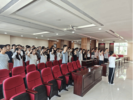 活動(dòng)在激昂的國(guó)歌聲中拉開(kāi)序幕,全體參會(huì)人員莊嚴(yán)肅立,齊聲高唱國(guó)歌。隨后,在電子信息學(xué)院十大魅力學(xué)子、優(yōu)秀黨員馮思淇的帶領(lǐng)下,畢業(yè)生黨員們面向黨旗,重溫入黨誓詞。